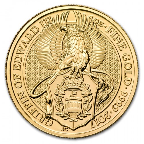 Золотая монета 100 фунтов "Грифон Эдуарда III" 2017 года 31,1 г., Великобритания