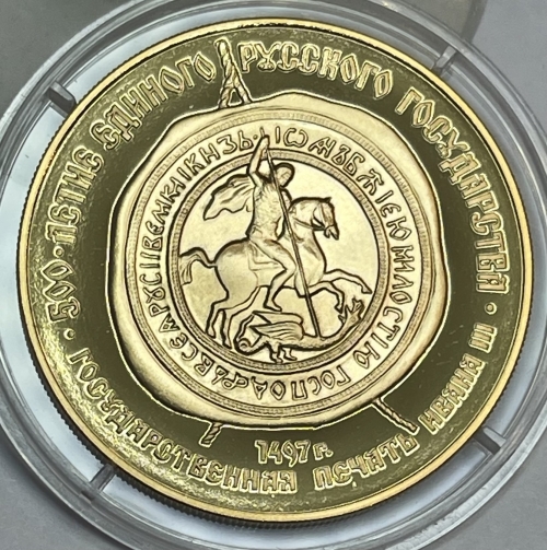 Золотая монета 100 рублей "Государственная печать Ивана III" 1989 год, ММД, 15,55 г., Au 900
