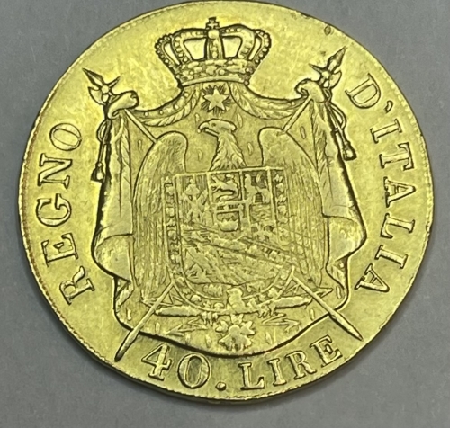 Золотая монета 40 лир Наполеон I , Италия, 1808 год, 900 проба