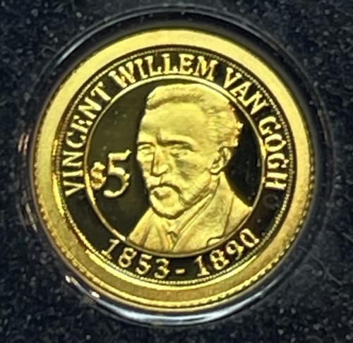 Золотая монета 5 долларов "Висент Ван Гог 1853-1890" Науру, 2011г., ПРУФ, 0,5г.,Au 999